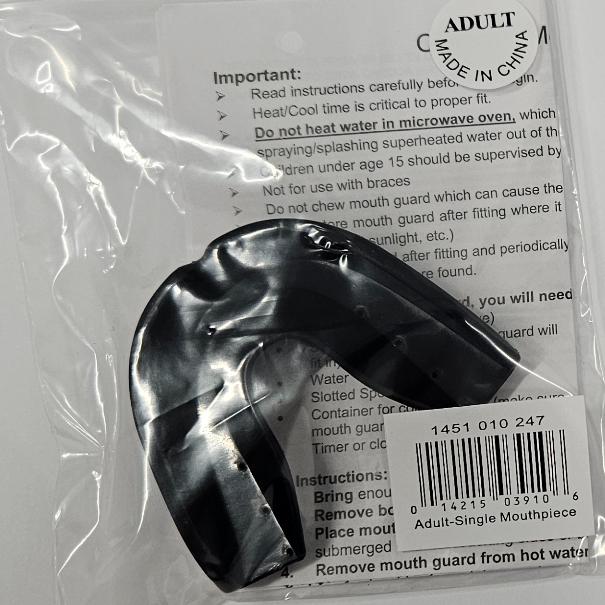 A great starter mouthpiece, this one-piece mouth guard form fits in seconds by boiling and biting. Great for a variety of sports, and available in youth and adult sizes.